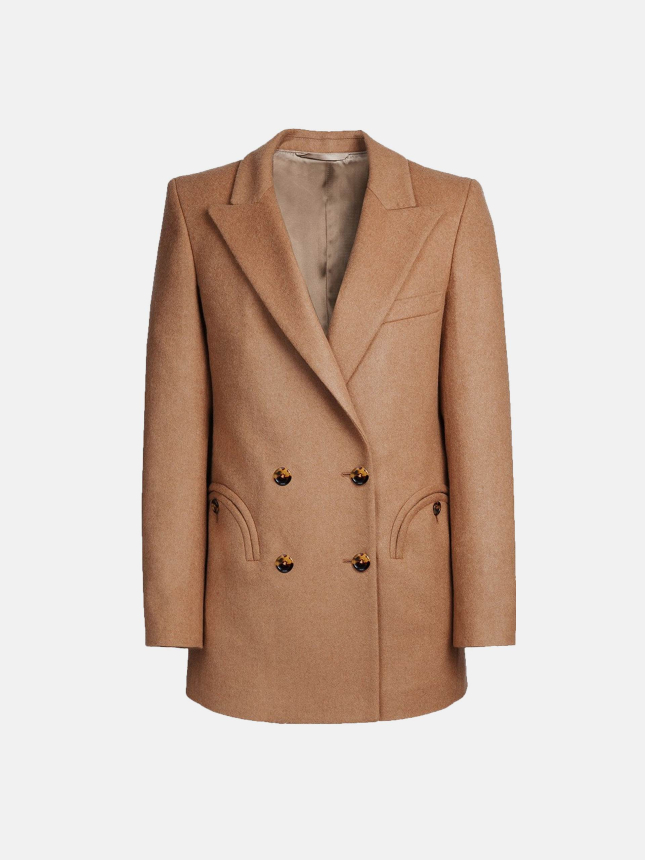This double-breasted camel blazer is as versatile as it is elegant: a go-to design for busy yet always chic city girls. Worked in a timeless camel tone, it’s an ideal match with jeans and lightweight sweaters in the transitional seasons.