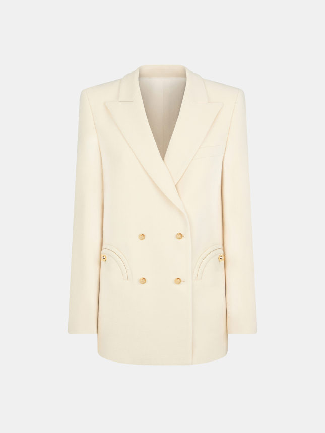 Double-breasted wool white blazer