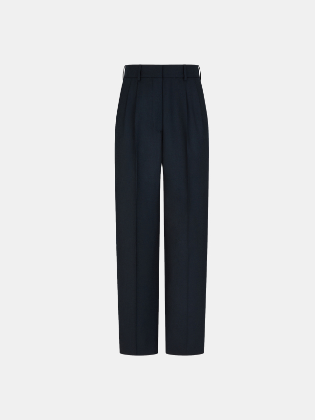 The Alcanara Navy Fox Pants are made from a light-weight wool, ideal for transitional season. With a high waist, straight leg, and front pleats, they create a suit when paired with one of the brand's coordinating blazers.