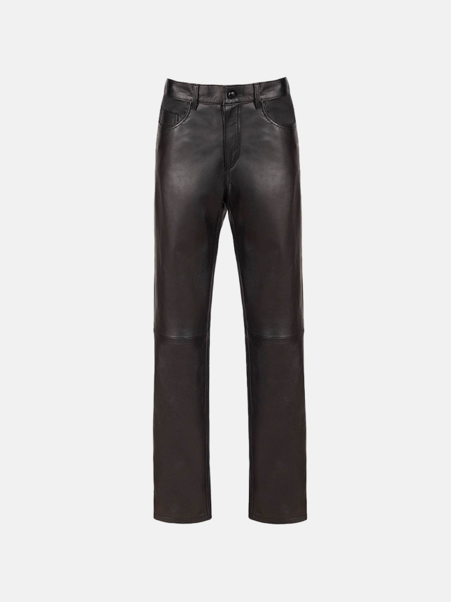 EMERA BLACK FOREST Women’s slim pants in dark green lambskin with snake-effect finish