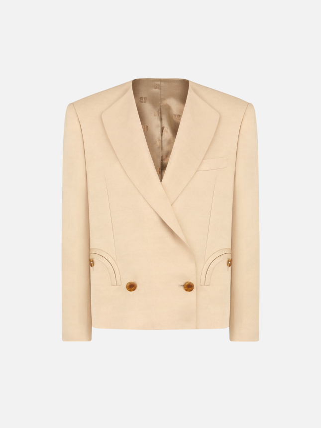 Women’s cropped double-breasted blazer in champagne viscose and hemp