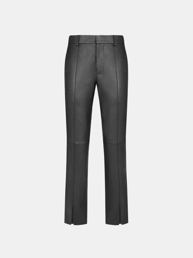 The 'Vegas Baby' Zander Pants are crafted from stretchable lamb leather for a soft and comfortable finish. They’re cut to a high-rise silhouette with straight legs, slashed at the hems to showcase one's shoes.