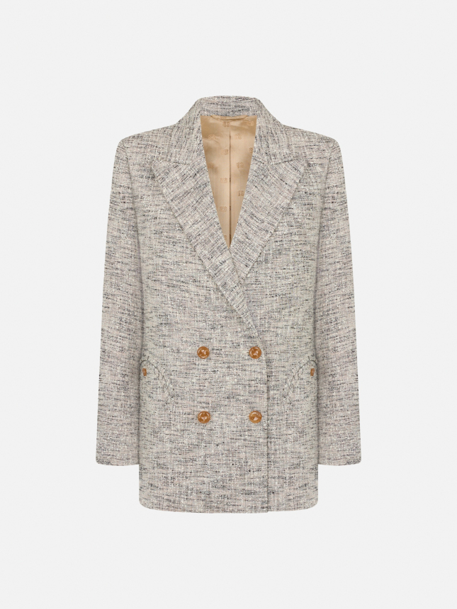 Women’s oversized double-breasted blazer in salt-and-pepper bouclé