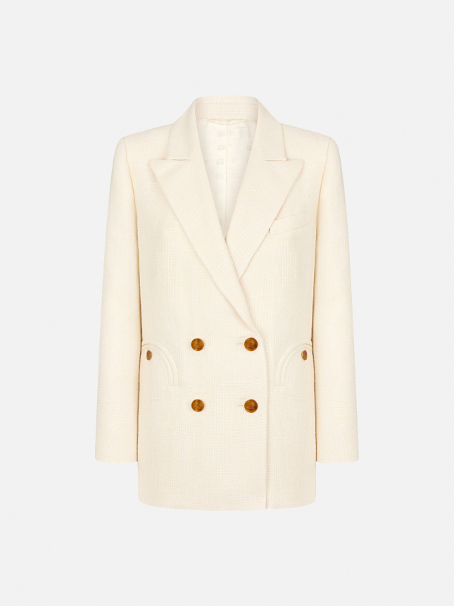 Women’s oversized double-breasted blazer in ivory linen, silk and cotton piqué