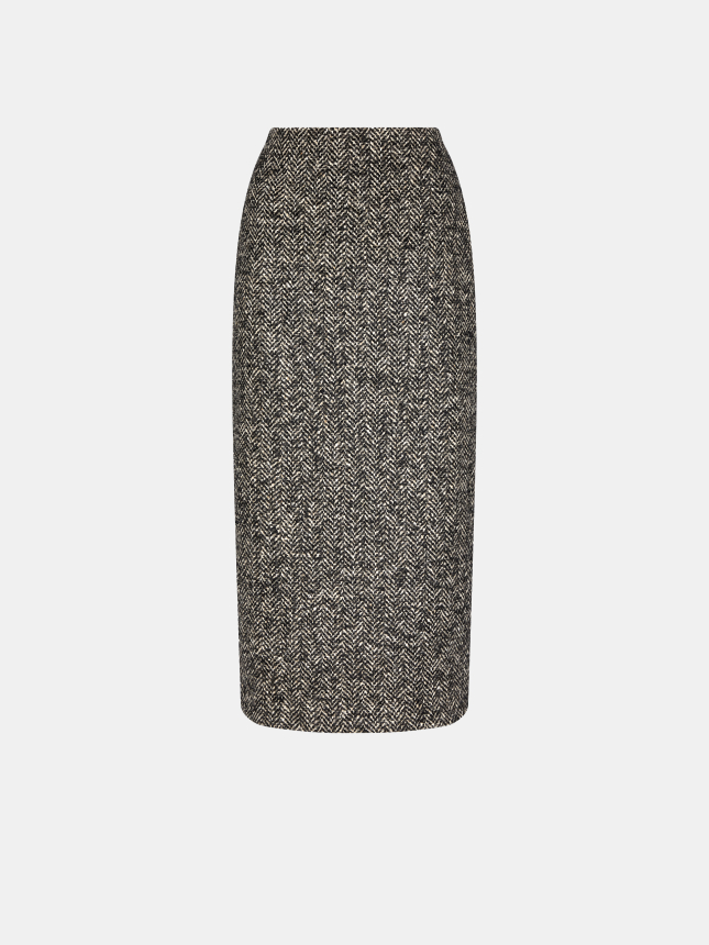 Black and white herringbone midi skirt