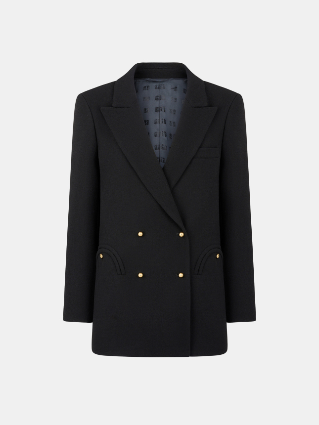 Double-breasted wool black blazer