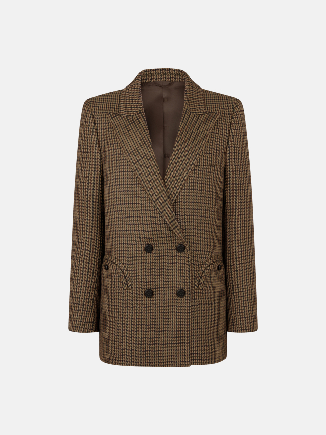 BLAZÉ Milano’s Everynight double-breasted blazer is relaxed enough to wear over various layers, like a polo sweater. It pairs perfectly with the matching trousers.