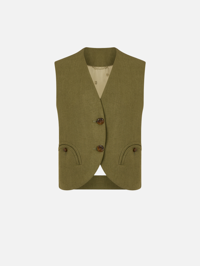 Women’s vest in palm green linen