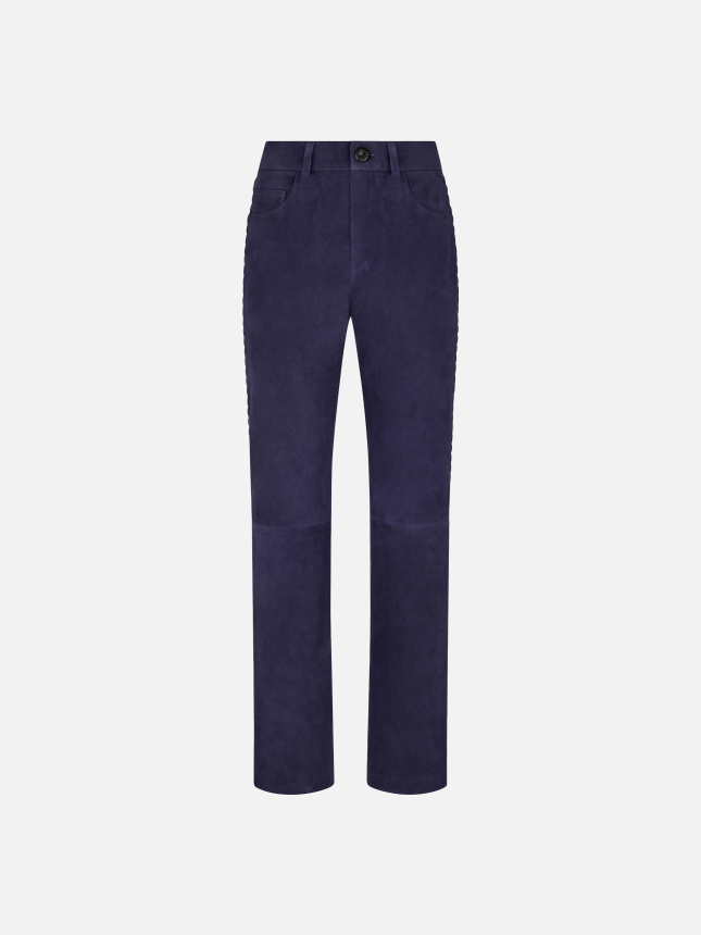 Women’s slim pants in midnight blue suede