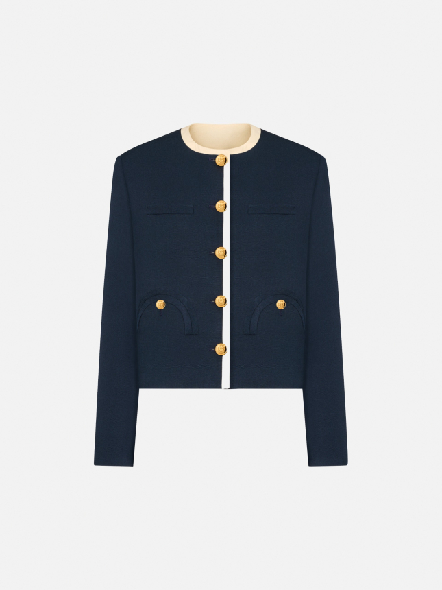 Women’s bolero jacket in midnight blue viscose canvas with contrasting trims