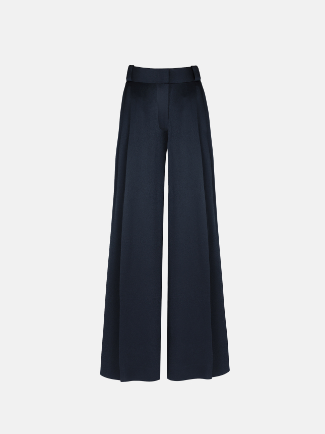 NOVALIS DARK NAVY Pantaloni da donna a gamba dritta con pinces in satin blu navy
