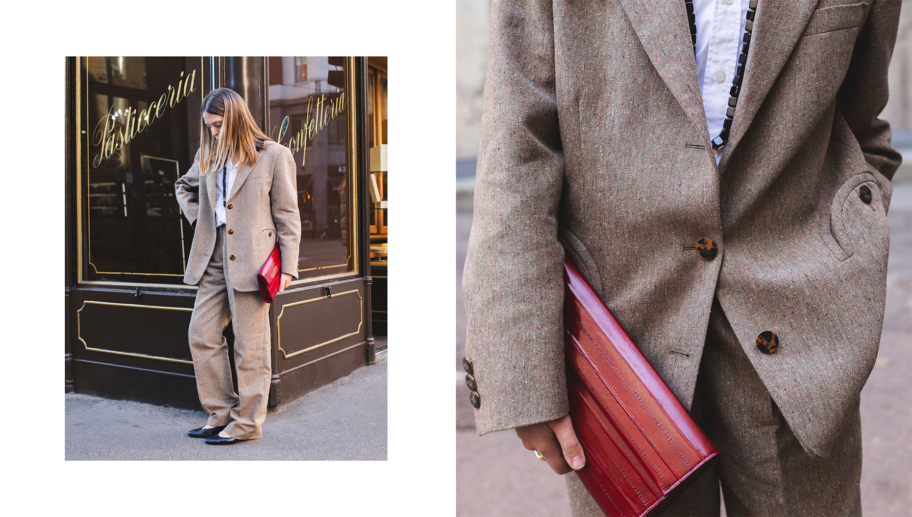 My ballet flats. I could never live without them. And I love a well-put-together outfit, like a blazer with classic trousers or a pencil skirt, pieces that make me feel refined yet effortless all the day.
